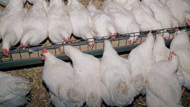 Today’s broilers grow so rapidly because of a genetic predisposition to accelerated growth rates which are supported by a nearly insatiable appetite. Plain English? They were bred to eat a lot. It’s a great characteristic for meat stock – we can produce a large amount of lean meat in a small amount of time, usually about 6 weeks. The ability to rapidly gain weight is not, however, such a desirable trait in breeding stock, who, naturally, share similar characteristics.