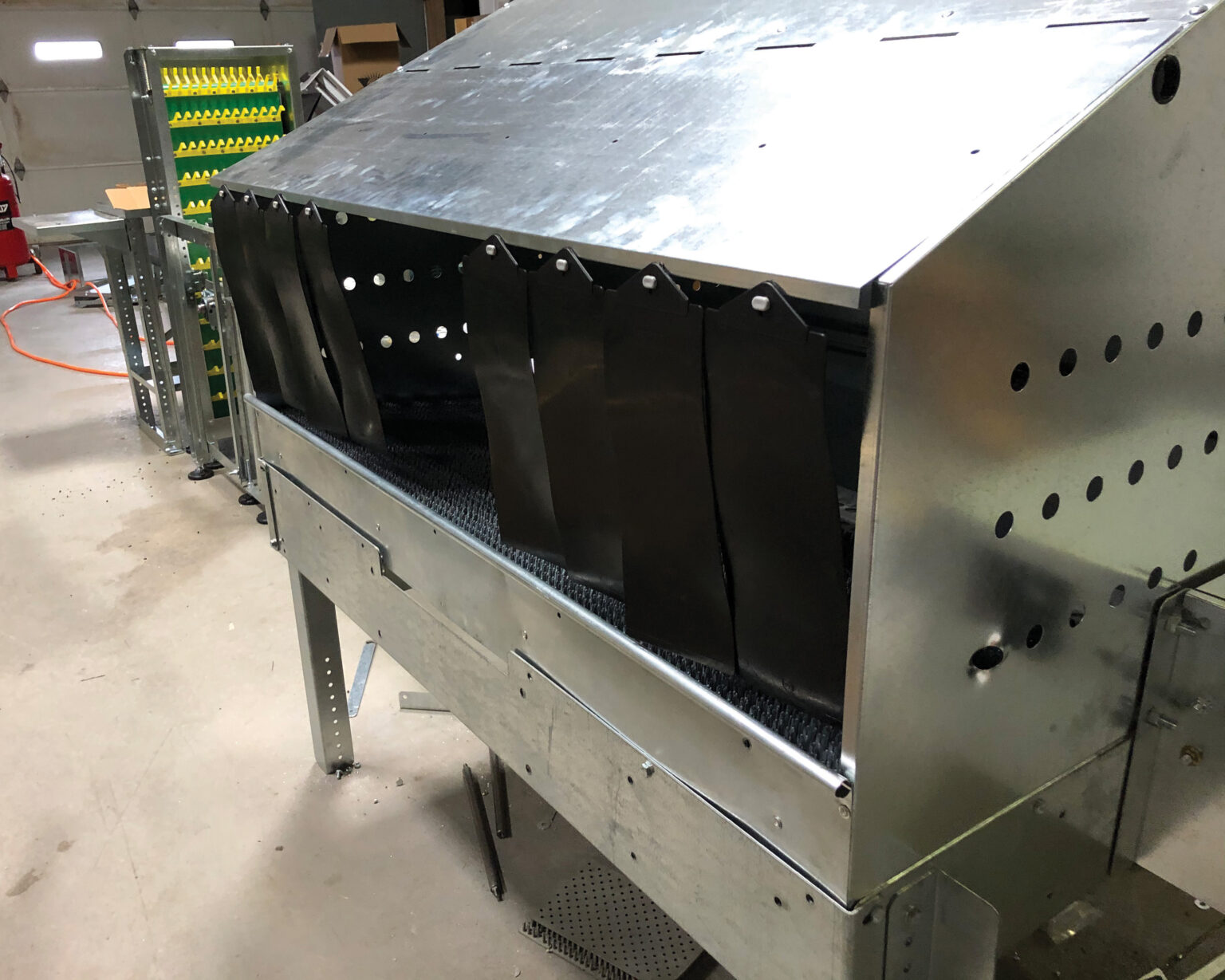 - 7 degree pitch on nest floor to roll eggs to the belt.