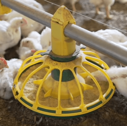 Most pans have grills. The number of spokes or dividers on each grill varies from one model to the next. Some have four spokes, some have 14. Ultimately, the number of spokes really just dictates how many birds have access to the pan at a given time. Open grills allow more useable feed space, but require closer management to control feed wastage. More spokes will limit useable feed space but minimize birds’ side-to-side movement preventing them from flicking feed outside the pan.