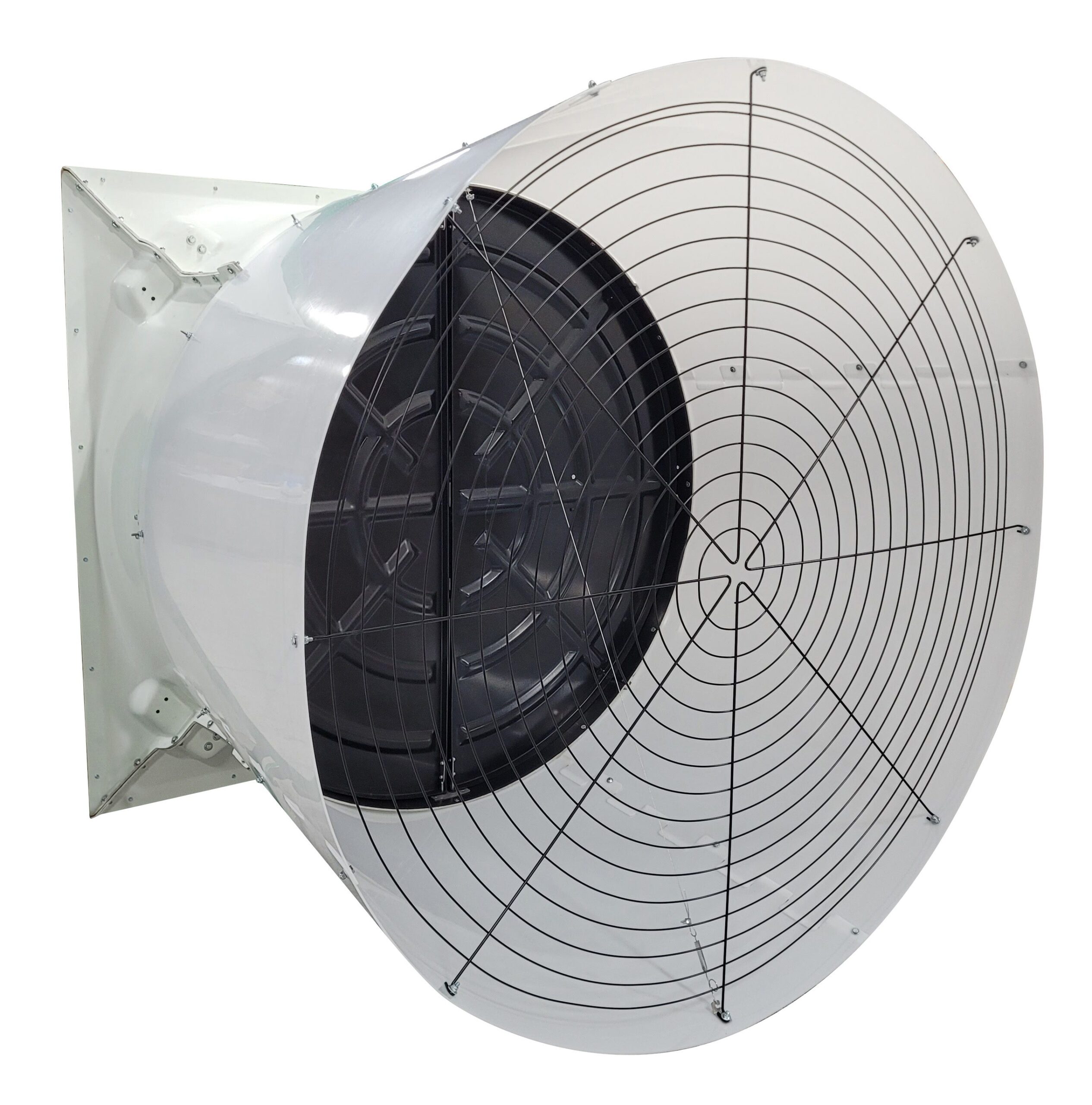 The MACH 57 is a 57″ exterior mount fan that generates higher windspeeds and fantastic performance. Internal components are made from corrosive-resistant materials and the fiberglass housing keeps the fan working for a long time. The common rough opening makes it great for retrofits.